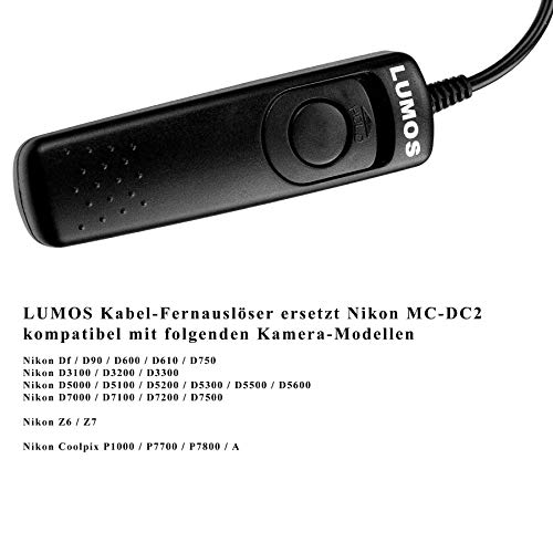 Telecomando a distanza Lumos sostituisce Nikon MC-DC2 per fotocamere Nikon compatibili e modelli Coolpix P1000 P7700 P7800 D3100 D3200 D3300 D5100 D5200 D5300 D5500 D5600 D5600 7000 D7100 D7200 D7500 D750 D610 D600 D90 Z6 Z7