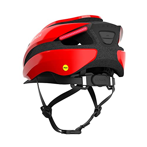Lumos Ultra Smart Helmet | Casco da bicicletta | Luci LED anteriori e posteriori | Indicatori di direzione | Luci dei freni | Bluetooth collegato | Adulti (MIPS, Rosso, M-L)