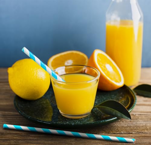 LUMOUS ROLA Cannucce di carta, 25 pezzi, biodegradabili e riciclabili per matrimoni, cannucce per feste di compleanno per cocktail, vacanze, caffè, bibite, baby shower (strisce bianche e celesti).