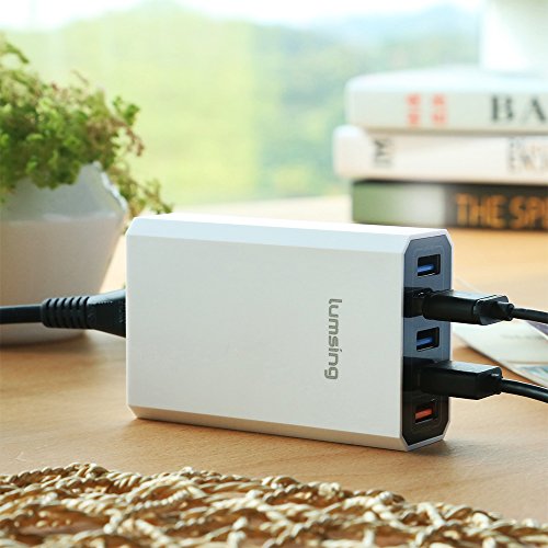 Lumsing Caricabatterie da tavolo 40W 5 Porte USB (4 Porte Intelligenti + 1 Porta Quick Charge) Caricatore da scrivania per iPhone 7 /6/ Plus,Galaxy S7 / Plus/S8, Note 5 8, Huawei P9/P10, Pixel, iPad Pro / Air 2 / mini, Nexus 6P, HTC10, LG G6 - Bianca