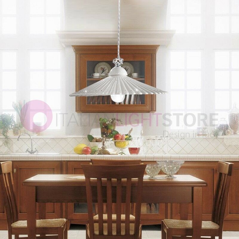 Lampadario a sospensione in ceramica bianca con diffusore ondulato D.37 cm impreziosito da cristalli di Boemia applicati. Lampada a sospensione realizzata in ceramica bianca lucida traforata impreziosita da bellissimi cristalli di Boemia applicati, in stile classico rustico country, collezione Luna Bianca di Ceramiche Borso . La lampada ha elementi in ceramica bianca lucida, il diffusore traforato, che propone una particolare forma ondulata plissettata, è reso unico da brillanti cristalli di Boemia applicati a mano. I particolari della struttura sono realizzati in ottone finitura cromo lucido. Cavo intrecciato in seta, regolabile in altezza. Ideale per illuminare tavoli da pranzo e cucine dal particolare design rustico e country. La collezione di lampadari in ceramica Luna Bianca è ispirata al passato e ripropone materiali classici come ceramica e ottone rivisti in chiave moderna, sapientemente lavorati da artigiani secondo antiche tradizioni.Comprende le lampade a sospensione e a