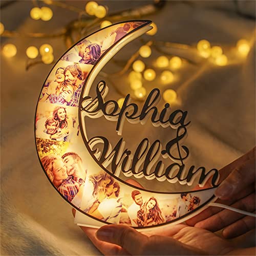 Luna crescente lampada personalizzata con foto lampada 3d personalizzata nome in legno personalizzato idee regalo anniversario(Luna)