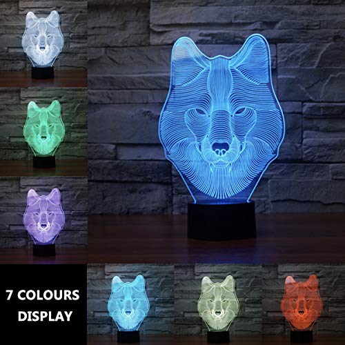 Lunaoo Luce Notte Bambini, Lampada 3D Lupo Lampada da Tavolo, 7 Cambiamento di Colore Luce Notturna per Cameretta Comodino