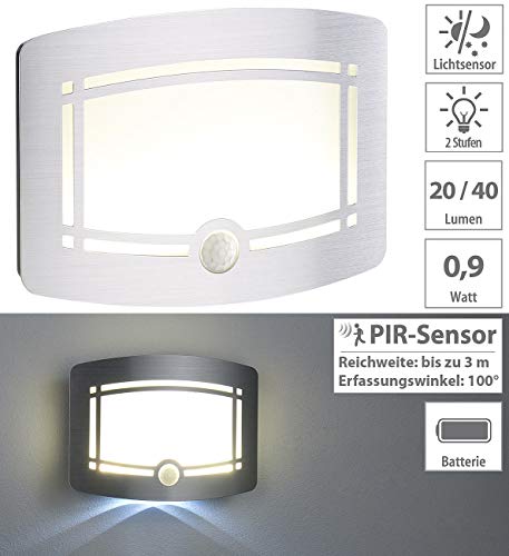 Lunartec Applique - Lampade da parete Con batteria: Applique a LED a batteria a 2 stadi, Sensore di movimento e luce, 40 ml (sensore di movimento Con luce, lampada batteria caricata)