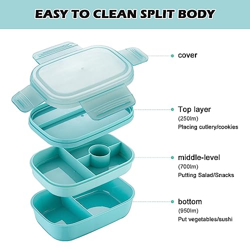Lunch Box 1900ML, Porta Pranzo da Ufficio, Bento Box, Porta Pranzo Scuola Pranzo con Pratici Scomparti e Cucchiaio Microonde e Lavastoviglie Sicurezza Contenitore per insalata per Adulti e Bambini
