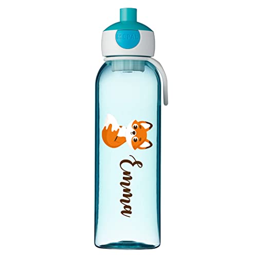 Lunch Box Set Personalizzato per Bambini e Bambine a Scuola con Nome Borraccia Acqua BPA Free con forchetta e Scomparto bento Fox [153]
