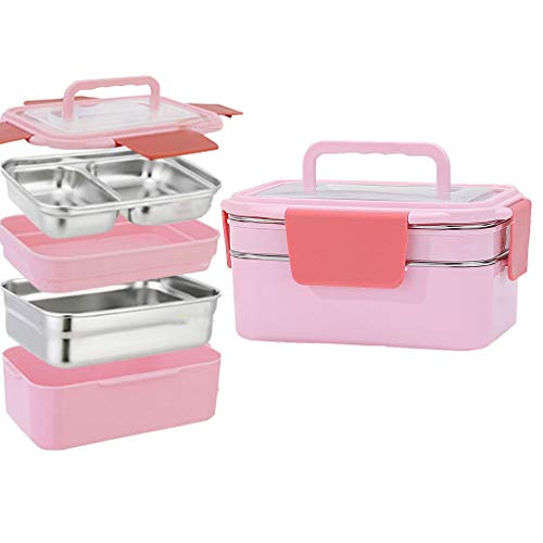 【SEPARATO E FRESCO】 Due strati sovrapponibili progettati mantengono i cibi separati e freschi. Ottime idee per la scatola di bento per il controllo della porzione di pranzo e una dieta speciale mantenendo separato il cibo.