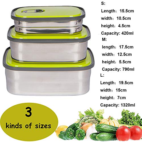 Lunch Box Scatole Bento in Acciaio Inossidabile,3 Pezzi Modello Sacco per il Pranzo a Tenuta Stagna Contenitori Alimenti Senza BPA per Ufficio Scolastico Scatole Alimenti per Bambini Donne Uomini
