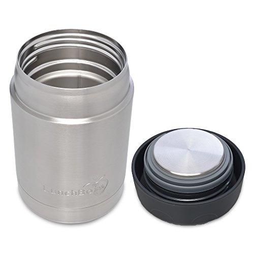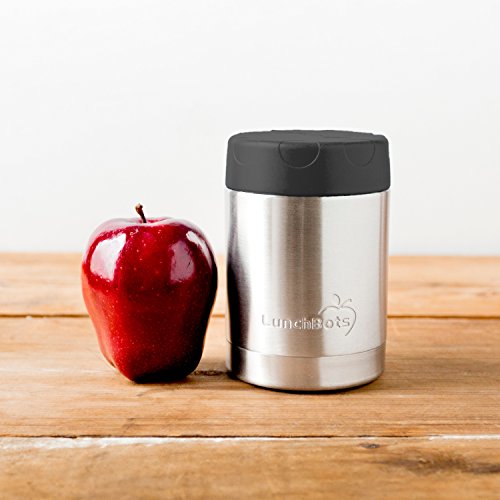 LunchBots Thermal 350ml. Con Interno Completamente in Acciaio Inossidabile - Contenitore per Alimenti Isolante che Tiene Caldo per 6 Ore o Freddo per 12 - Contenitore Ermetico Termico da Zuppe per Comodità Portatile - Nero