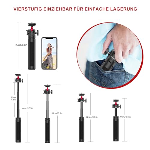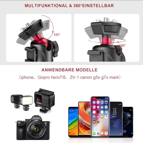 Lunriwis Mini Treppiede per Fotocamera, Treppiede Selfie Stick con Supporto per Cellulare, Treppiede da Tavolo con Testa per Cellulare con Vite da 1/4", per Fotocamera e Smartphone