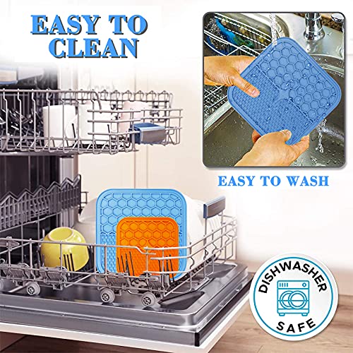 Lunriwis Tappetini da Leccare i Cani,Dog Lick Mat Silicone,Tappetini per Mangiatoia lenta per Cani con Potente Ventosa Tampone da Leccare,2 pezzi con 1 spatola in silicone