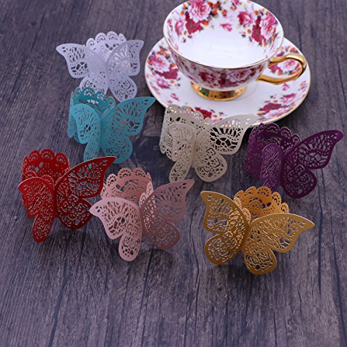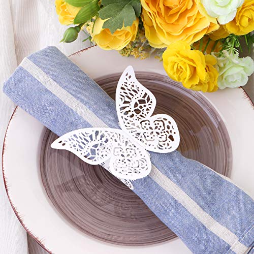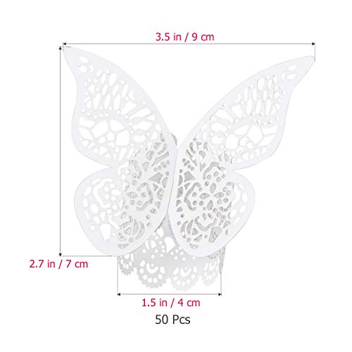 LUOEM, portatovagliolo a forma di farfalla, in carta, di colore bianco, decorazione da tavolo per matrimonio, 50 pezzi