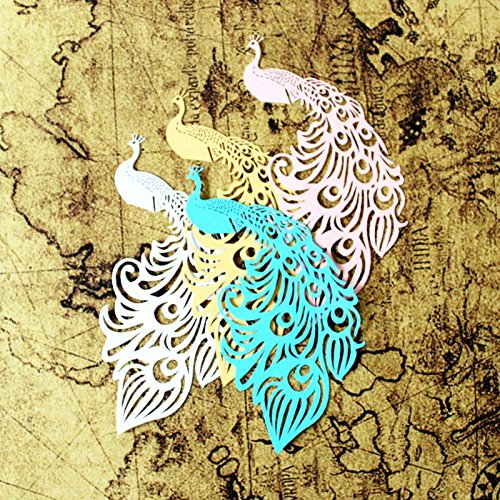 Luogo Vetro Carte Tagliato Al Laser Pavone Matrimonio Decorazione Del Partito 50pz Oro