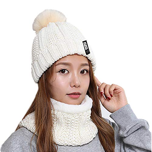 Luoistu Cappello Donna Invernali Berretto Donna in Maglia con Sciarpa, 2 in 1 Berretto Invernale Donna da Sci all'aperto e Set Sciarpa, Cappello Donna Inverno con Sciarpa (Bianco, Taglia Unica)