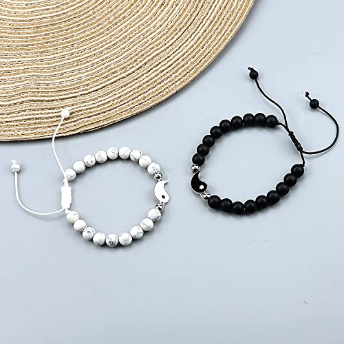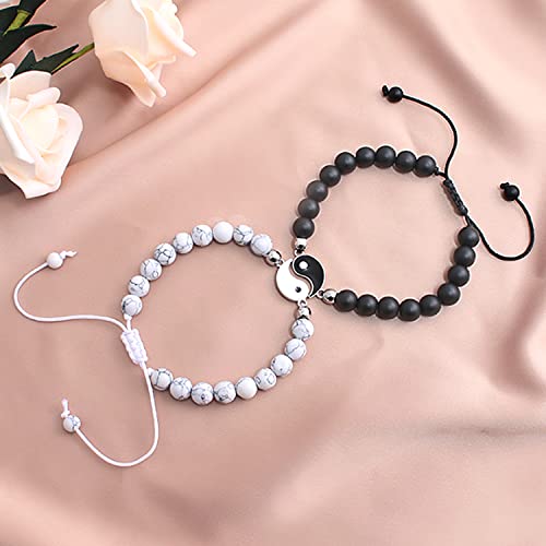 LUOKIFUR Bracciale magnetico a cuore per coppie Bracciale magnetico regolabile con perline Braccialetti in pietra opaca per donna regalo per gli amanti del fidanzato fidanzata (Black-White(YY))