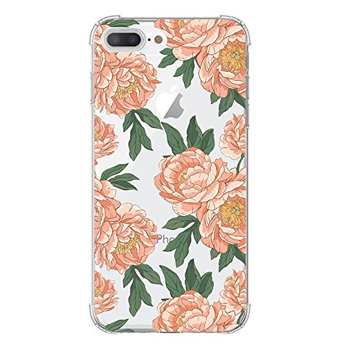 Luolnh Cover iPhone 7 Plus, Custodia Silicone Ultra Trasparente Crystal Di Shock Assorbimento Paraurti in TPU Morbida per iPhone 7 Plus -Rosso Peonia