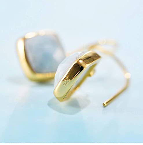 LuoMei Orecchino Argento S925 Orecchini Quadrati Acquamarina Placcati Oro Orecchini da Donna in Argento ScorrevoleCome mostrato