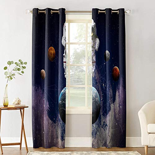 LUOWAN Tende Oscuranti per interni 160 X 140 cm Tende Oscuranti per interni 2 Pezzi Universo astronauta pianeta Tenda Oscurante con Occhielli