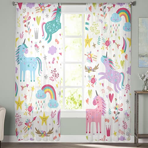 LUOWAN Tende Semi-Trasparenti 2 Pannelli 35% Tende Oscuranti Dimensione Totale 183x214 CM Unicorno Cartone Animato Bambino Bianco Tende Decorative Per La Casa Per La Cucina Camera Da Letto Soggiorno F
