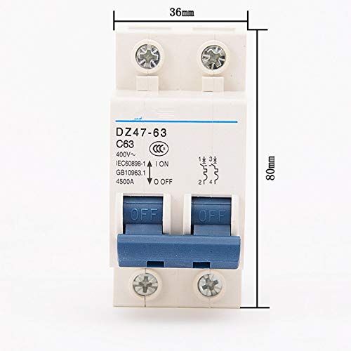 LUOXUEFEIFENG Interruttore Bipolare Interruttore Domestico 2P 63A Sovraccarico Di Cortocircuito Proteggi Organo