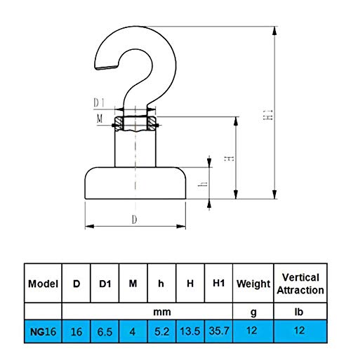 Luozy Gancio Magnetico,Magnete con Gancio Ultra Forte al Neodimio Zincato,Diametro 16 Mm,Forza Di Tenuta Di 8.0 Chilogrammi,Ganci Magnetici -12 Pezzo (argento)