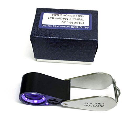 Lupa Triplete acromatico pieghevole Euromex 15 x 21 mm - LED bianco e uv