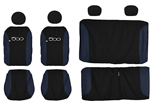 Lupex Shop 500_N.Bs Copri-sedili Auto Compatibili 500 | Nero Blu Scuro | Set Copri-Sedile Anteriori e Posteriori | Logo Ricamato | Airbag Compatibile | Accessori Auto Interno