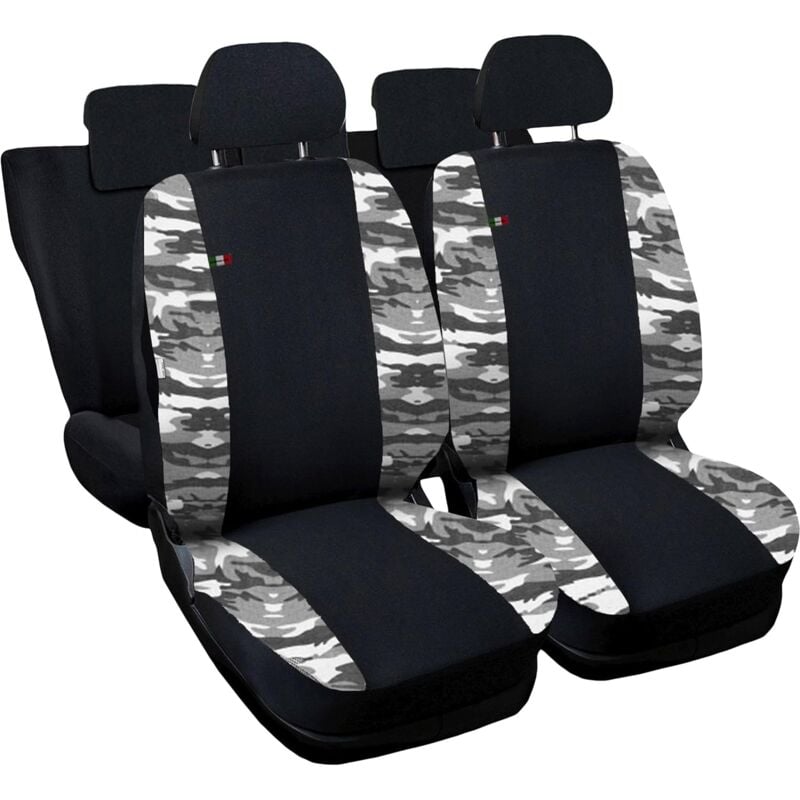 Coprisedili auto compatibili con Duster, adattabile per la versione con schienale posteriore diviso in 2 parti (sdoppiata 40-60) ed un unico pezzo per la seduta. Ai lati dello schienale anteriori è presente il foro per la fuoriuscita degli airbag laterali posti sui sedili Realizzato in tessuto policotone composto dal 70% poliestere e 30% cotone con tessuto elasticizzato nella parte posteriore della fodera per migliorare ma la sua adattabilità. Non adatto ad auto con sedili anatomici/sportivi Il set è composto per un totale di 13pezzi cosi divisi: 4 coperture anteriori (schienale 2pz + seduta 2pz), 3 coperture posteriori (schienale 2pz + seduta) e 5 copri poggiatesta. Nella confezione è presente un set di ganci utili al montaggio MADE IN ITALY - La lavorazione del prodotto viene interamente realizzata in Italia Donano un aspetto unico alla vostra auto, sono utili per non macchiare e/o danneggiare i sedili personalizzando gli interni migliorandone l'aspetto. Si prega di evitare di usare