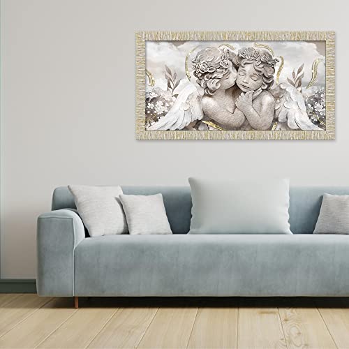 Lupia Quadro Moderno Camera da letto con cornice GIOVY Bianca Oro ANGELS IN FLOWERS MIX 60x110 cm con Glitter