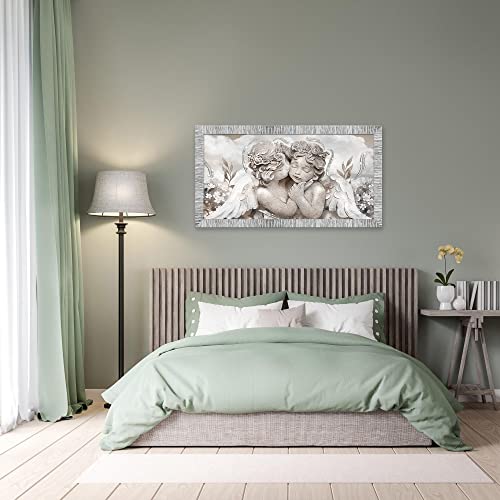 Lupia Quadro Moderno Camera da Letto con Cornice GIOVY Bianca Argento Angels in Flowers Mix 60x110 cm con Glitter