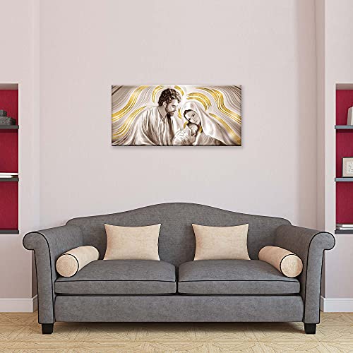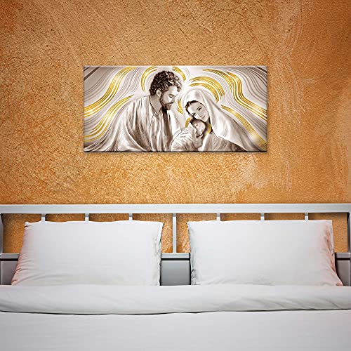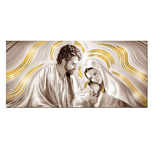 Lupia Quadro Moderno MONDIE' Sacra Famiglia Poster su Legno con Lamina Oro cm 31x66 Nativity Shabby Gold Soggiorno, Camera da Letto