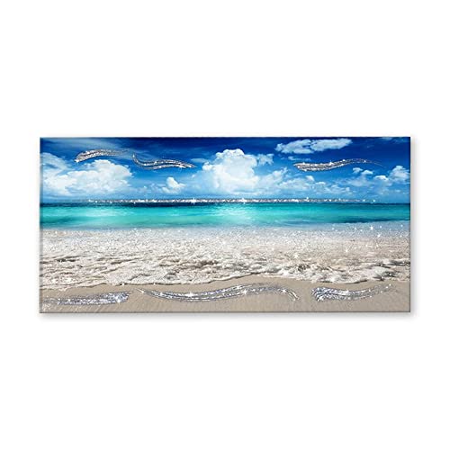 Lupia Quadro moderno su tela con Brillantini e Glitter argento, SEA SUMMER spiaggia, in riva al mare d'estate, per soggiorno, capezzale camera da letto 65x149 cm