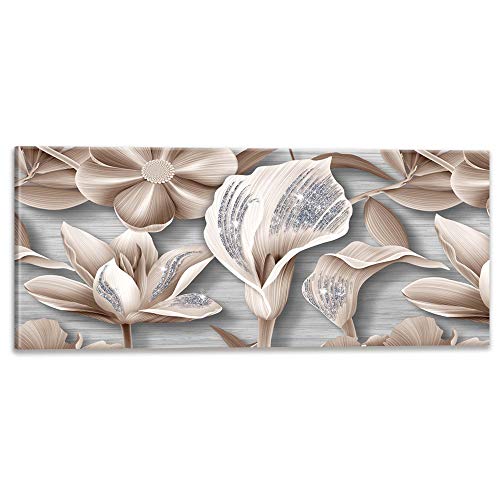 Lupia Quadro Moderno su Tela con Brillantini e Glitter Argento 52x122 cm Fiori Beige Shabby per Soggiorno, capezzale Camera da Letto