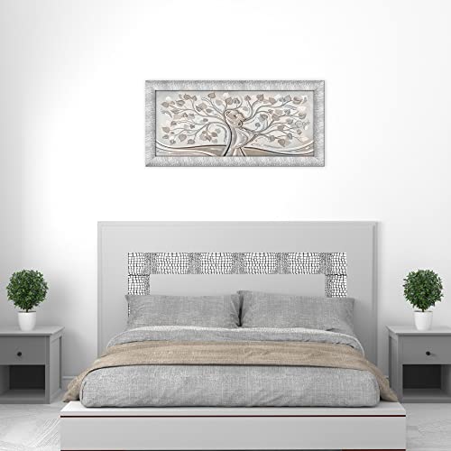 Lupia Quadro moderno su tela con cornice e glitter PRINCE 63x133 cm ALBERO ABBRACCIO MIX SILVER, per camera da letto e soggiorno