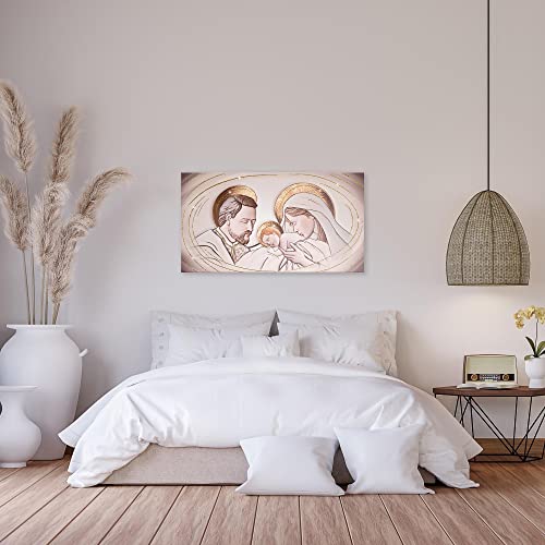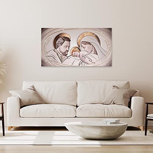 Lupia Quadro moderno su tela in cotone Sacra famiglia SHINY 62x115 cm THE KISS CERAMIC con glitter e brillantini oro, Natività per soggiorno, capezzale camera da letto