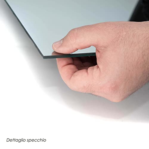 Sul retro e' presente un pannello in fibra di legno e lo specchio e' in vetro cristallo di prima luce, ad alto indice di riflessione e di alta qualita', per il massimo dell'artigianalita' Italiana