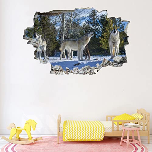 Lupo Adesivi Murali Murales Fracassati 3D Animale Decalcomanie Per Pavimenti In Impermeabile Art Foresta Per La Camera Da Letto, La Decorazione Della Parete Della Scuola Materna 50x75cm