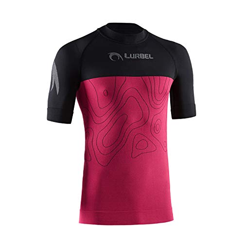 LURBEL Maglietta Samba Short Sleeves, maglietta tecnica da uomo, maglietta da trail running, maglietta traspirante e anti-odore, maglietta da corsa Nero - Fucsia S
