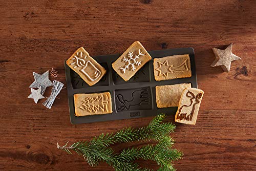 Sei diversi motivi natalizi^Utilizzabile anche come modello^Resistente alle temperature da -60°C a 260°C^Lavabile in lavastoviglie^Con ricetta