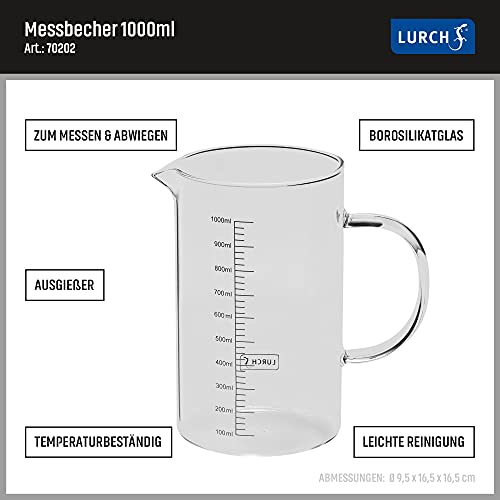 Lurch 70202 - Caraffa graduata in vetro borosilicato resistente al calore, 1 l