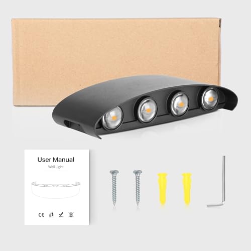 [Materiale del prodotto] La lampada da parete è realizzata in alluminio pressofuso con superficie liscia e liscia, struttura eccellente, resistente all'acqua, alla pioggia, alle alte temperature e lunga durata. superficie della lampada da parete: nera;