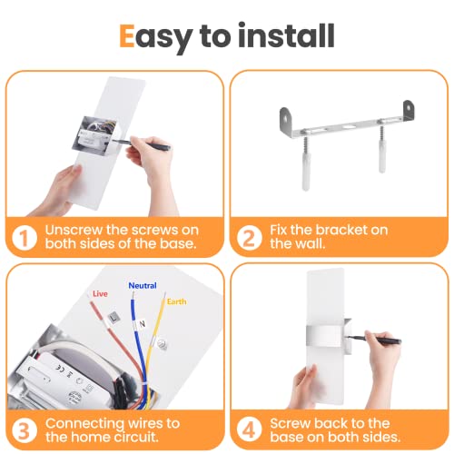 [Facile da installare] Quando si installano le lampade a parete, è molto facile fissare prima la superficie e poi fissare con le viti. Se qualsiasi problema non può essere risolto, non esitate a contattarci. Vi risponderemo entro 24 ore.