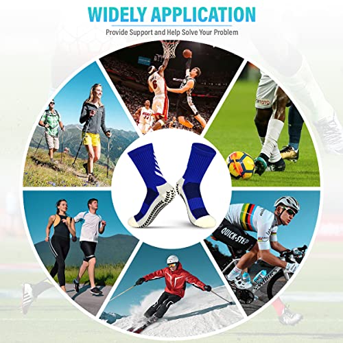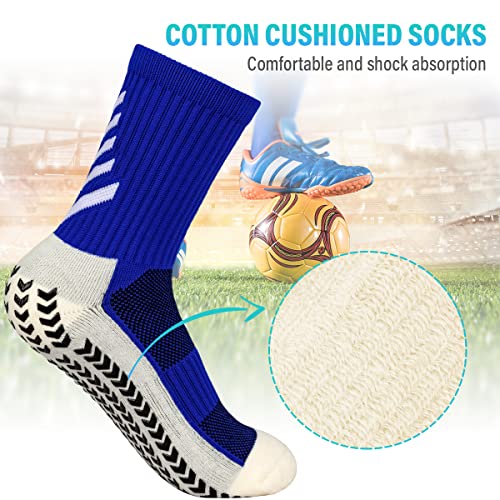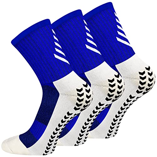 LUROON Calze Antiscivolo Calcio, 3 Paia Calzini Sportivi Inverno Addensare Cotone Anti-vesciche Calzini Da Corsa Calzini Traspiranti Tennis Calzettoni Unisex per Ciclismo Trekking Corsa Jogging (Blu)