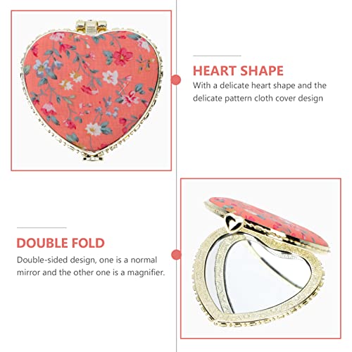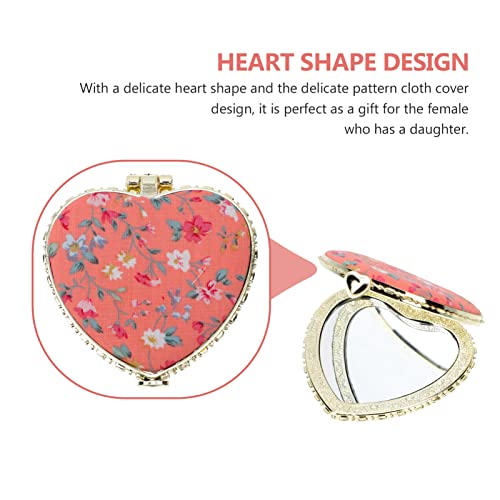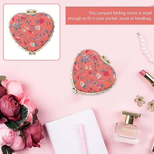 Lurrose 2Pcs Cuore Pieghevole Specchio Tascabile Mini Boho Fiore Vintage Trucco Specchio Specchio Cosmetico Compatto per Le Donne Ragazza Borsa da Viaggio Decorazione Rosa