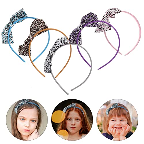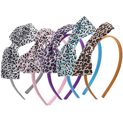 Lurrose - Cerchietti per capelli con fiocco, motivo leopardato, 5 pezzi