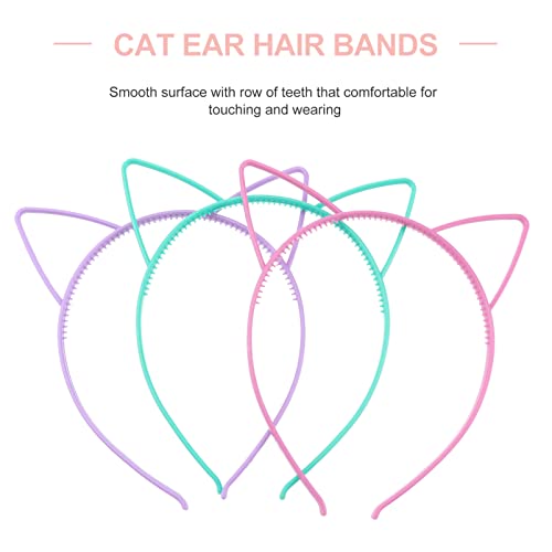 Fascia per capelli in plastica con orecchie da gatto, per bambini, per feste, 3 pezzi, colore: viola rosa e verde