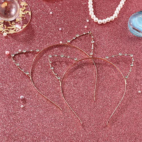 Lurrose 2 cerchietti per capelli con orecchie di gatto con perle e cristalli.