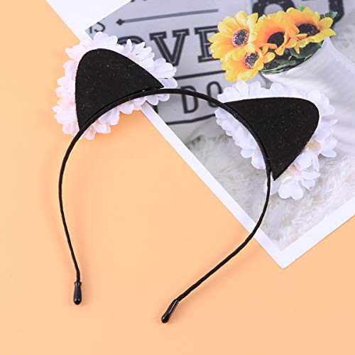 Lurrose Cerchietti Orecchie Gatto cerchietti fiori per capelli accessori per capelli per bambini e donna (bianco)