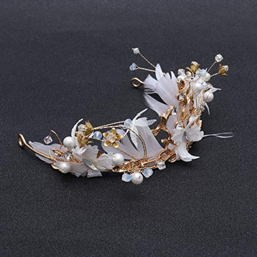 Lurrose corona nuziale sposa piuma strass perla diadema principessa regina corona fascia capelli cerchio copricapo per donna ragazza signora (dorato)