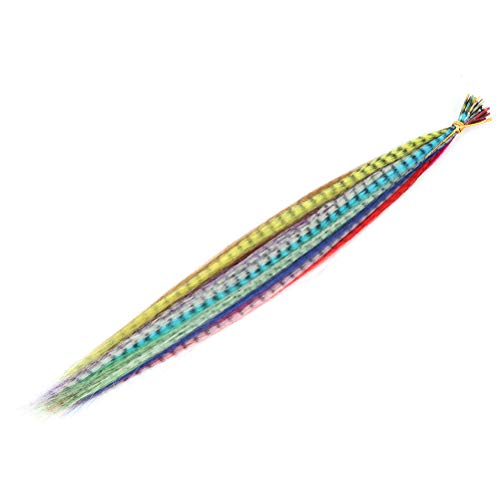 Lurrose 1 set di extension per capelli lisci con piume colorate, per donne (35 ciocche di piume di colore misto e 1 uncinetto e 100 anelli per capelli)